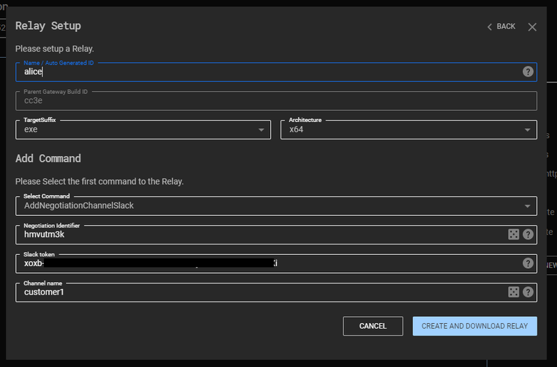 Gateway ができたら、次は Relay との橋渡し役となる C2チャンネル機能、 Channel の作成をしましょう。今回は Slack を Channel として設定します。