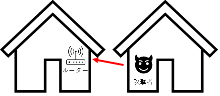 ↑のイメージ図のようにwifiの不正利用の中でも「隣の家のwifiを不正利用」というシナリオで実験を行いました。 実際に隣の家のwifiを不正利用すると問題になるので、今回は私が用意した環境で試しました。 何度も言いますが、「絶対に自身の環境以外で試さないでください」
