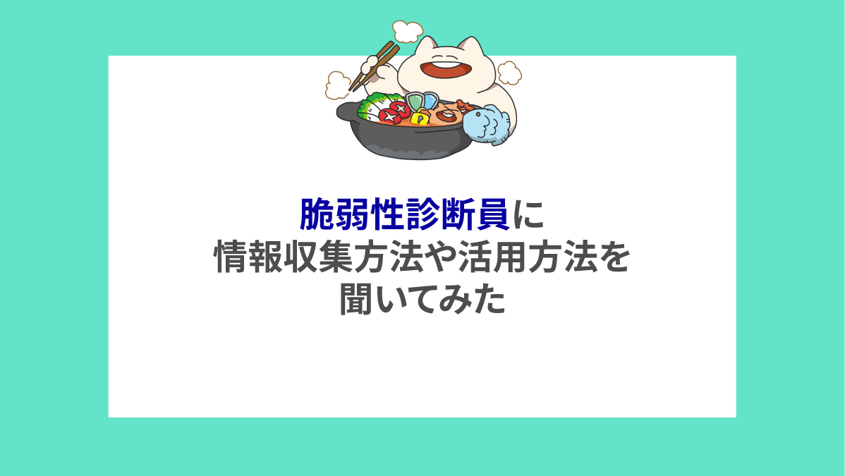 デジタルペンテスト部のみやけです。Webアプリケーションの脆弱性診断員となって一余年、セキュリティのプロフェッショナルを名乗るために知見を広げたいと思う今日この頃。知見を広げるとなればやはり情報収集かと考えていたところ、昨年の就活イベントで就活生から「情報収集はどんなことをされていますか?」という質問をいただいたこと思い出しました。私自身も他の人の情報収集については気になりますし、それを今後どう活かしていけばいいのかを聞いてみたい。そこで、セキュリティについて知見を広げたい、これからセキュリティを学びたいと考えているみなさんの参考にもなればと、Webアプリケーションとプラットフォームの脆弱性診断員に情報収集についてのアンケートを実施してみました。